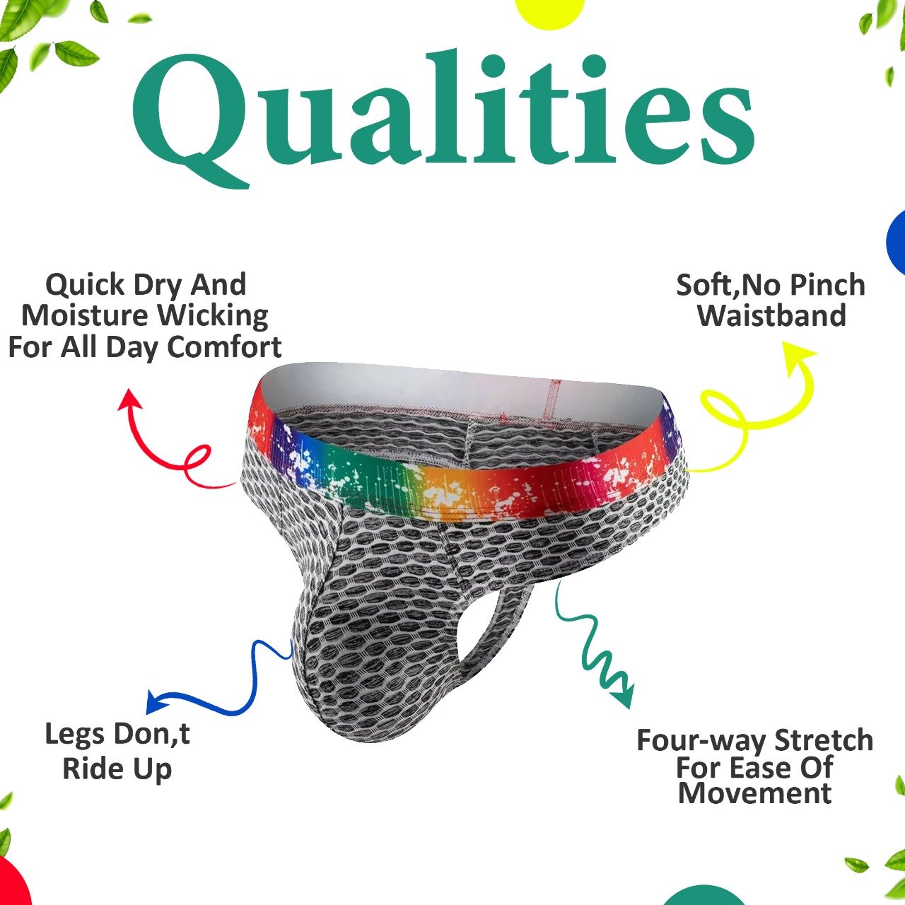Gray Thong With Multicolor Soft, No Pinch Waistband.